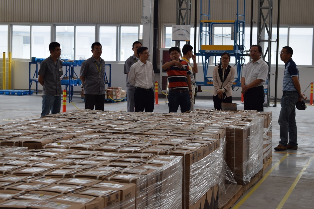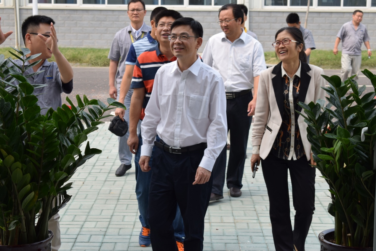 (天分司杜志清經理引導總部領導參觀生產現場)