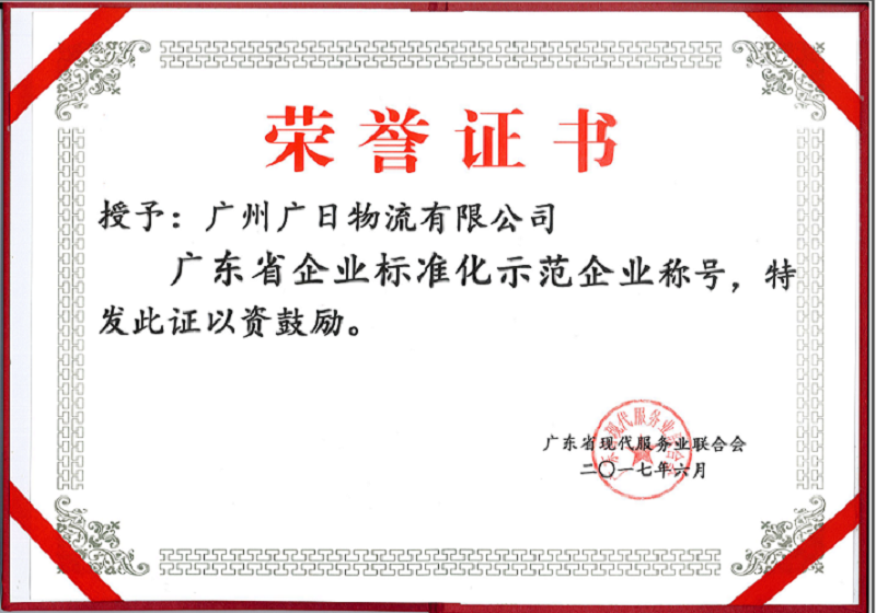 管理規范 服務優質——廣日物流榮獲“廣東省企業標準化示范企業”稱號