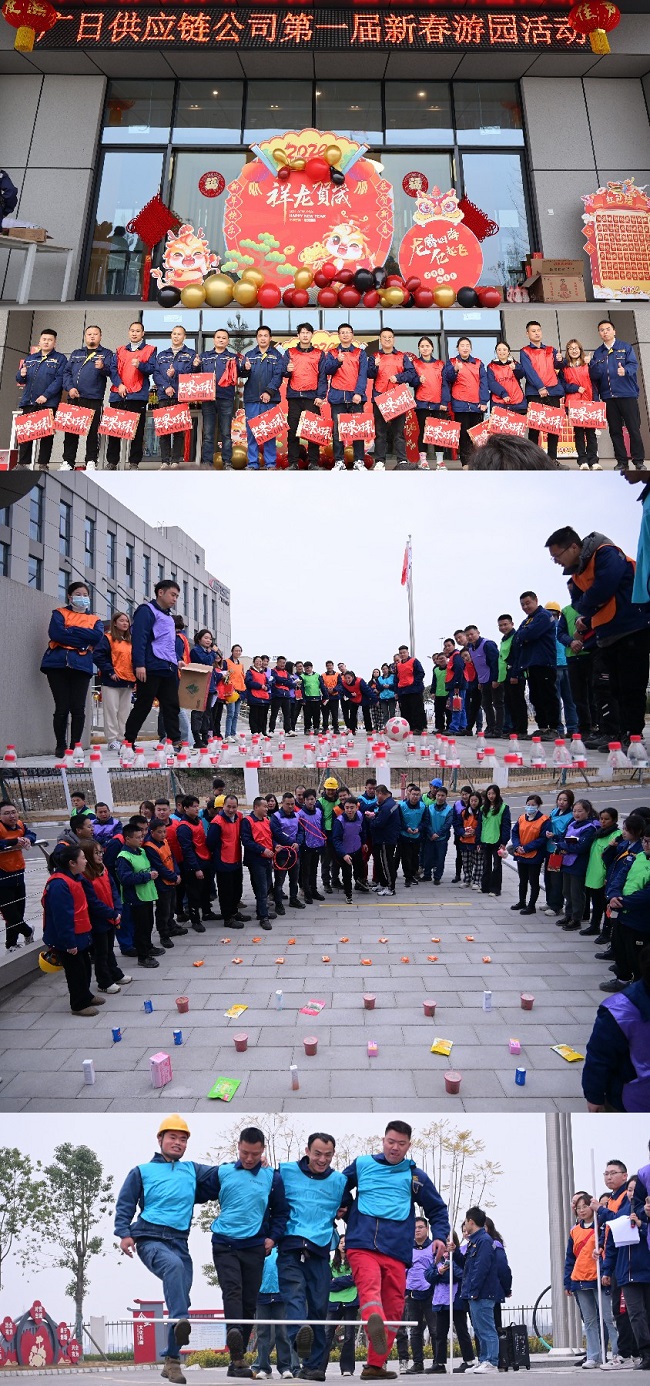 開工首日,元氣值“拉滿”!各基地組織開展內容豐富的趣味游園活動,與員工共慶新春佳節,營造歡樂祥和、團結友愛的節日氣氛。在“不倒森林”、搶椅子、投壺、紅色保齡球、拔河、幸福套圈……各具特色的趣味活動中,廣日物流人團結協作、友愛互持,元氣滿滿,展現出各地員工團結協作、奮發向上的精神風貌。所有人員帶著假期充好的“滿格電量”,元氣滿滿復工復產!