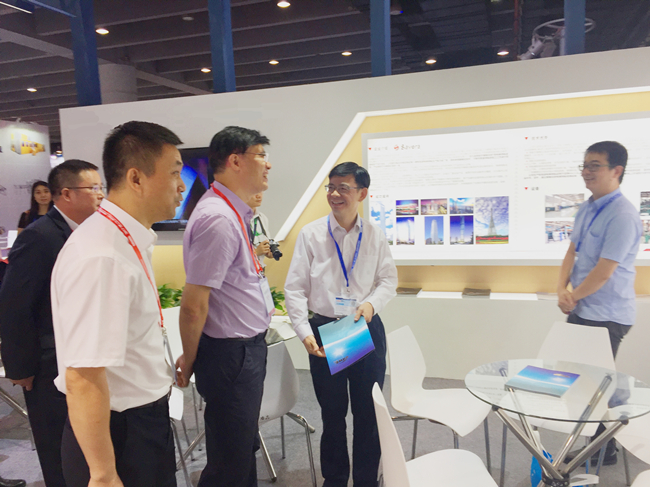 廣州市國資委黨委書記、主任陳浩鈿在廣州電氣裝備集團有限公司董事長蔡瑞雄的陪同下,蒞臨廣日物流展位參觀。