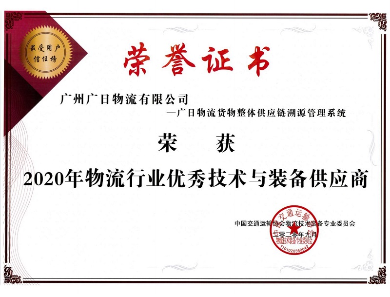 2020年9月26日,由中國交通運輸協(xié)會主辦的2020(第三屆)中國智能物流技術裝備大會暨物流技術裝備企業(yè)家論壇在上海召開。此次大會以“2020疫情下的變革與挑戰(zhàn)”為主題,聚焦探討國內(nèi)外疫情下物流技術與裝備發(fā)展的新趨勢,全面解密物流企業(yè)如何布局“新基建”加快實現(xiàn)轉(zhuǎn)型升級。會上,廣日物流憑借自主研發(fā)的“貨物整體供應鏈溯源管理系統(tǒng)”及自身過硬的技術實力,獲評“2020年物流行業(yè)優(yōu)秀技術與裝備供應商”及“2020年物流行業(yè)數(shù)字化轉(zhuǎn)型先進企業(yè)”。