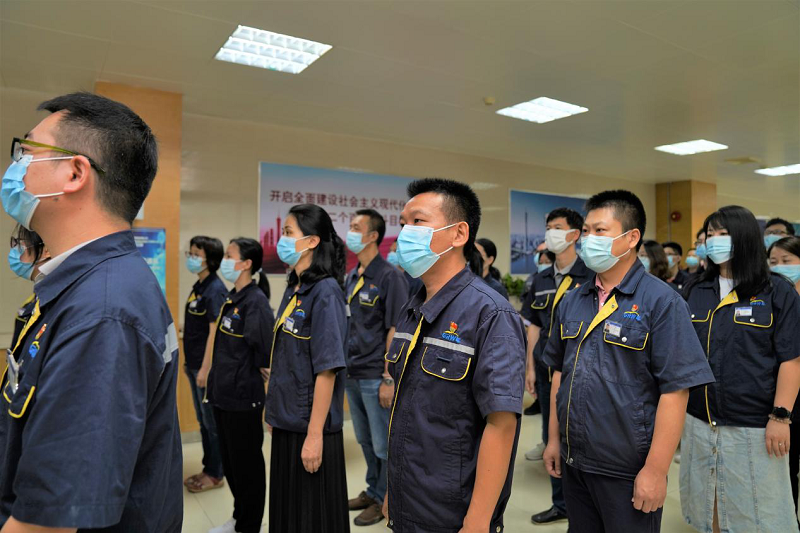 為迎接中國共產(chǎn)黨成立101周年的到來,激發(fā)公司全體職工建功新時代,奮進新征程的干事創(chuàng)業(yè)熱情,以昂揚姿態(tài)喜迎黨的二十大順利召開,2022年7月1日上午8點30分,廣日物流公司黨總支在公司總部開展了以“喜迎二十大 奮進新征程”為主題的升旗儀式活動。公司黨政領導班子、黨支部書記、委員及部分黨員代表共計49人參與了觀看升旗儀式。
