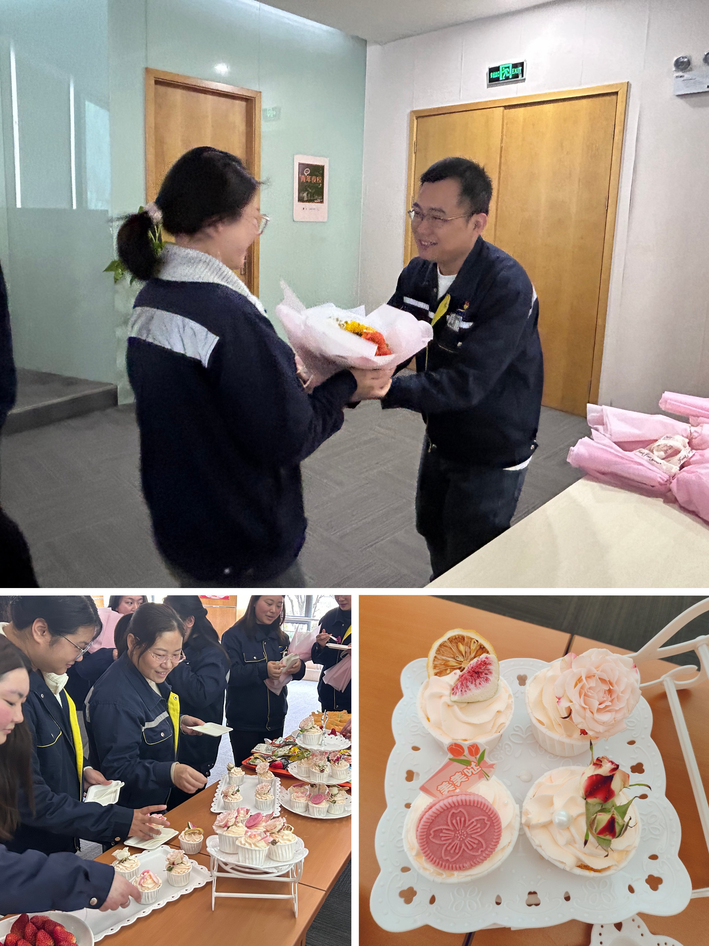 3月8日,廣日物流(昆山)有限公司工會特別舉辦了慶?!叭恕眹H勞動婦女節(jié)女職工茶話會活動。會前,工會不僅為每位女神準(zhǔn)備了精美的節(jié)日禮品,還特邀副總經(jīng)理賴曉東變身為“獻(xiàn)花使者”,為女神們獻(xiàn)上了鮮花,并致以節(jié)日祝福和問候,每位接過鮮花的“女神”無不笑容滿面。緊接著,大家便進(jìn)入了本次活動的高潮環(huán)節(jié)——茶話會,在融洽、歡樂的氣氛中,一邊享受工會精心準(zhǔn)備的水果、飲料、蛋糕、零食等可口食物,一邊敞開心扉、暢所欲言,結(jié)合本職工作談體會,聯(lián)系個人生活聊感想。